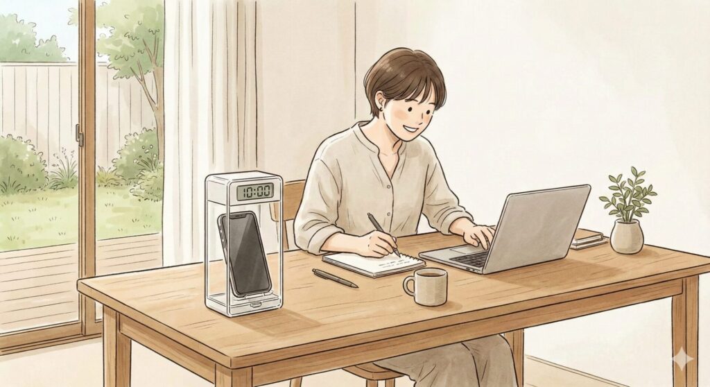 最近スマホをついつい触りすぎて時間を浪費してることに危機感を覚えて、「設定した時間の間は絶対にあけられない箱」を買ったんだけど、これ思ったよりもずっと仕事がはかどるようになるのでオススメです。